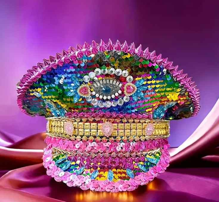 Elevate your style with this striking Unisex Colorful Blue Eye Punk Hat featuring vibrant pink rivets and shimmering rhinestones, perfect for adding a bold statement to your look. Inspired by steampunk and punk aesthetics, this hat is designed to make you stand out at any event, from Halloween parties to music festivals.